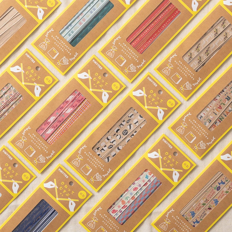 オーバンドデザインのジップ付きクラフト袋は2色展開。輪ゴムは10色ご用意しました。