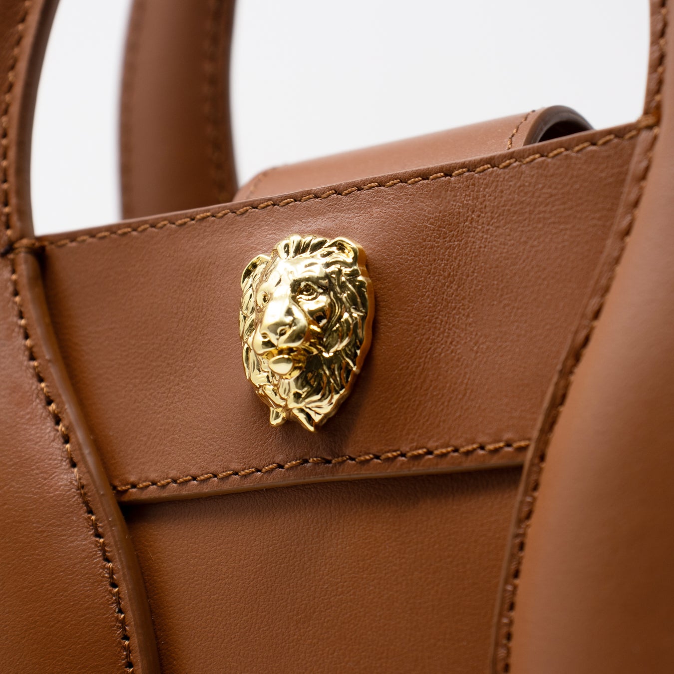 「このロゴは単なるブランドマークではありません。私を生まれ育った街と結びつける象徴です。街の古い建物を守るライオンたちのように、このバッグが持つ人に強さと守護の意味をもたらすようにと願いを込めました。」