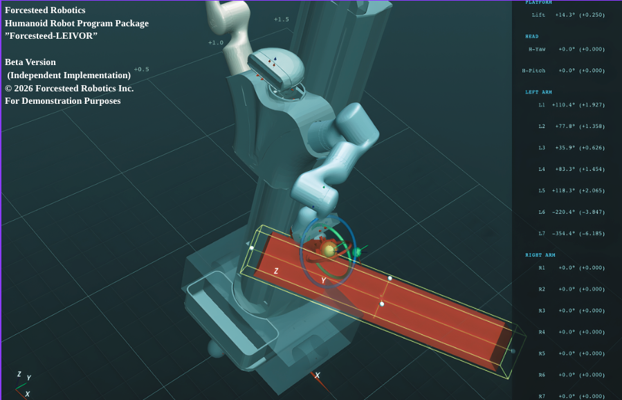 Forcesteed-LEIVORは、特定のヒューマノイド機種専用のソフトウェアではなく、複数のヒューマノイド・セミヒューマノイドに適用展開可能な「汎用ヒューマノイドコントローラ」(従来のプログラミング型+模倣学習型ハイブリッド)として設計されています。