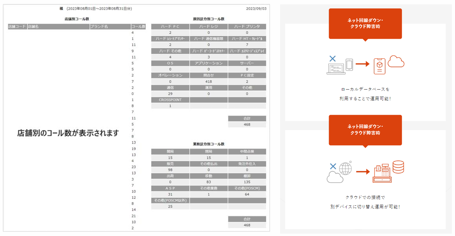 サポート体制も365日9時~23時と万全、サポート対応の結果を毎月送付しております。