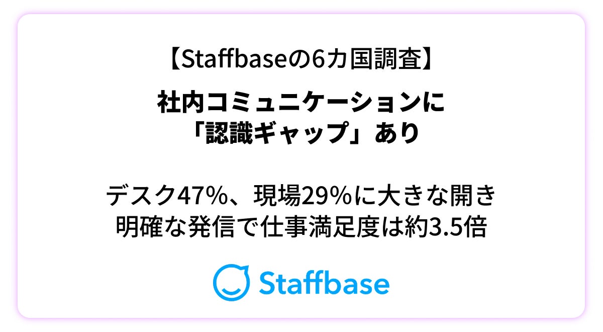【6カ国調査】社内コミュニケーションに“認識ギャップ”あり デスク47%・現場29%に大きな開き、明確な発信で仕事満足度は約3.5倍
