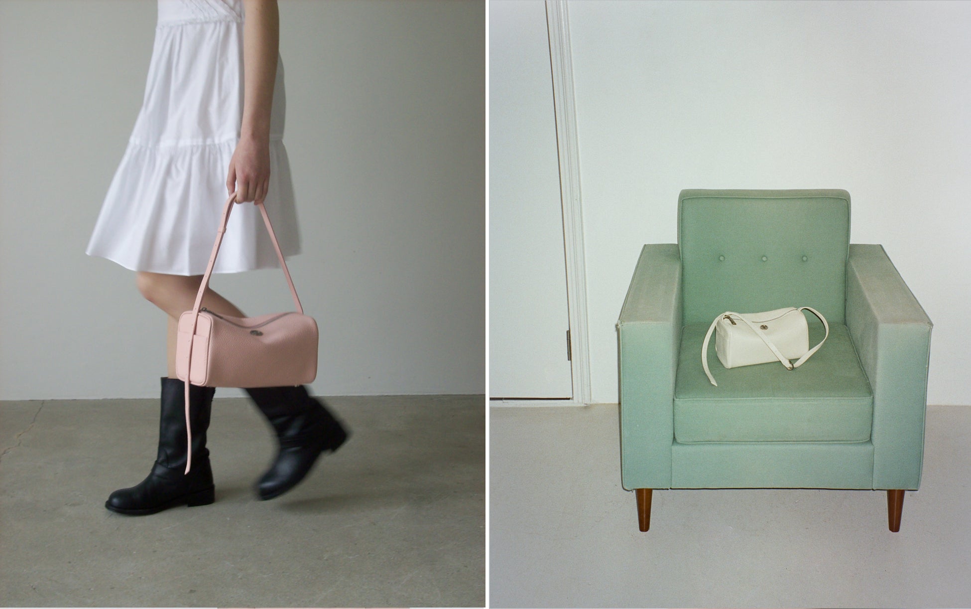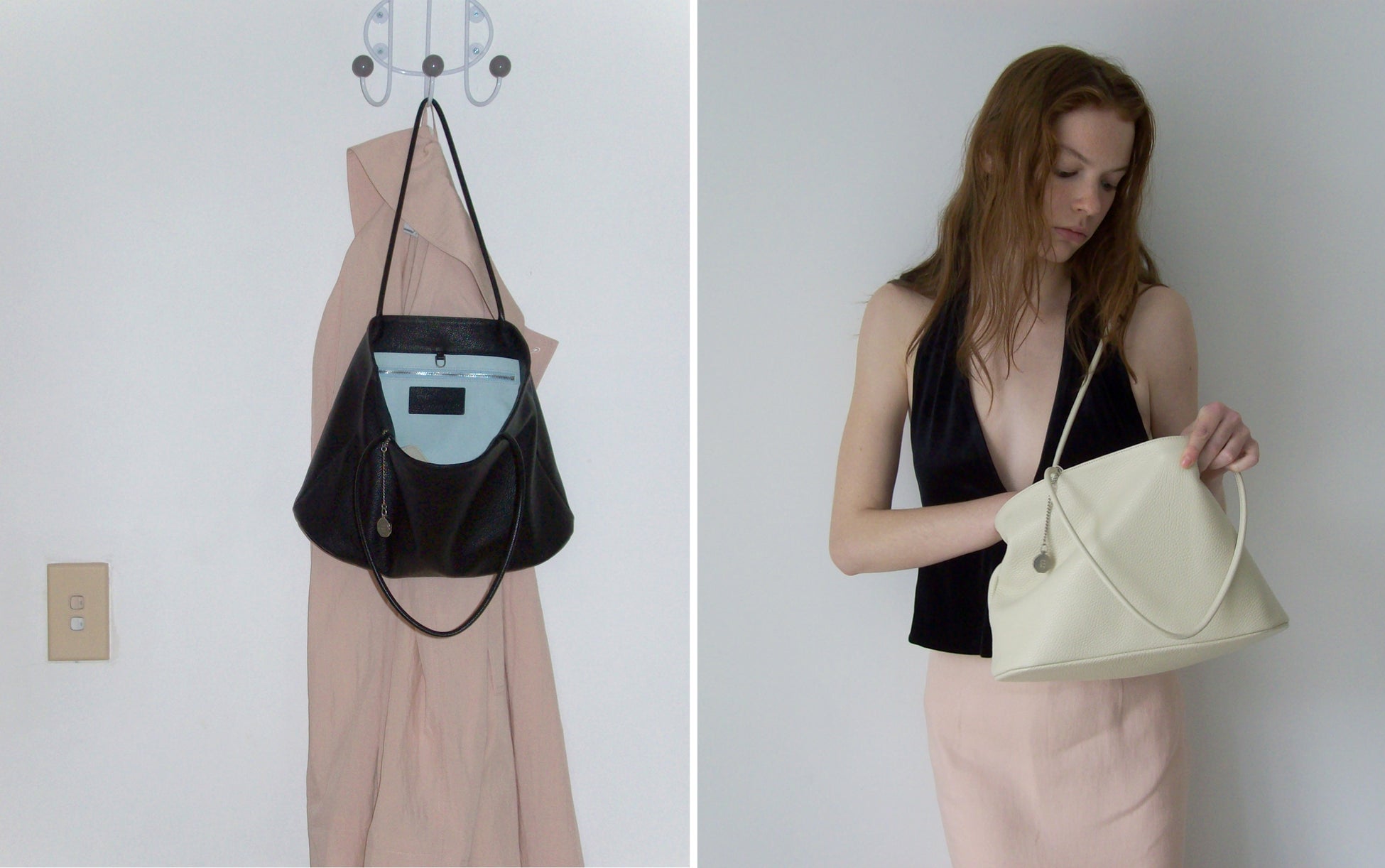 従来の「brett bag」は「new brett」に再解釈され、新しく登場します。ストラップを調整し、ショルダーバッグからクロスバッグまで、自由にコーディネートでき、さまざまなシーンを楽しめます。革素材のivory, shy pink, soft black、そして時間が経つほどヴィンテージムードが深まるsuede beigeまで、多彩なラインナップで展開されます。