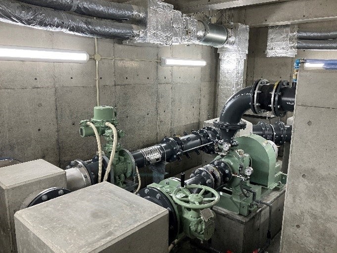 FIT制度+適用の発電事業のみならず、災害等に伴う停電時には、小水力発電を非常用発電機として埴原田配水池の機能を損なうことなく、再生可能エネルギー100%で運用できる自立運転機能を有しており、水道施設のなかで再生可能エネルギーによる発電設備を備えた施設においては、全国的に数少ない設備となります。