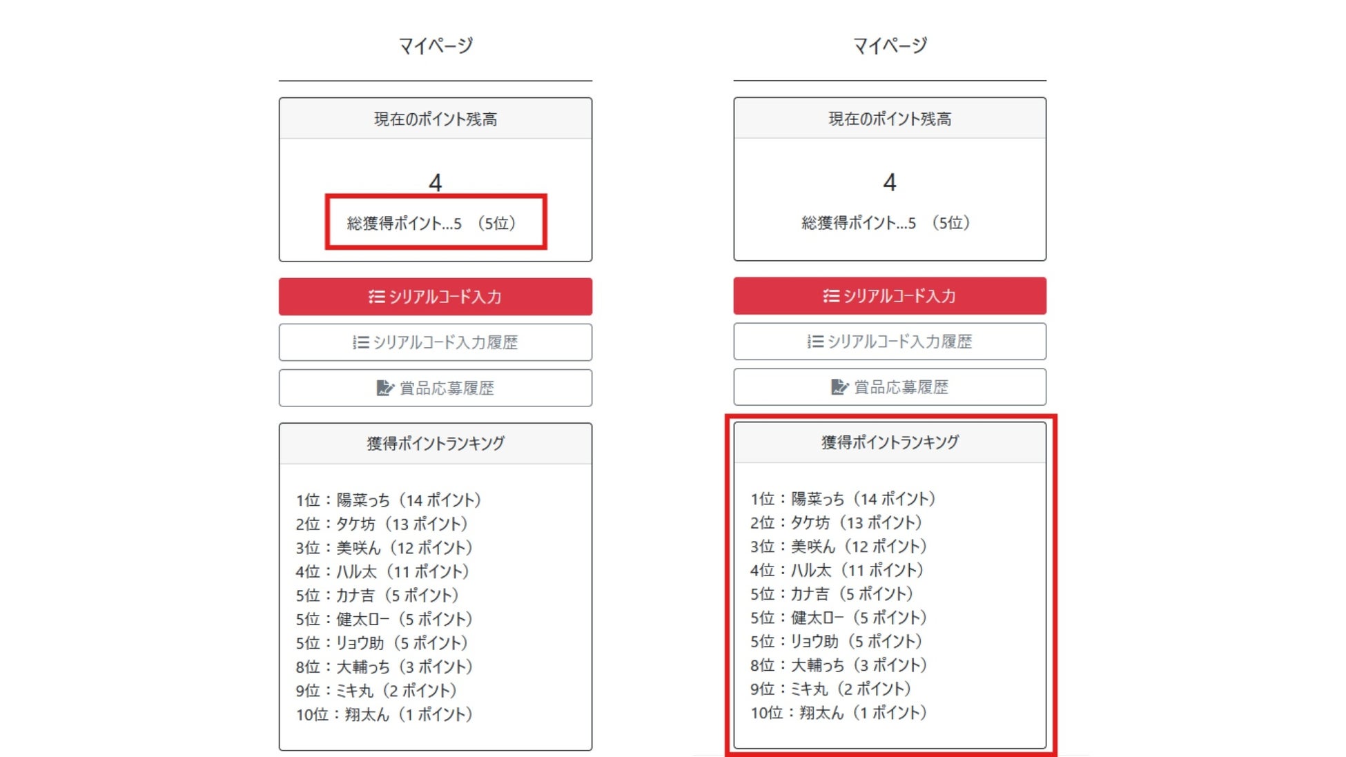 これにより、キャンペーンで獲得したポイントが順位として可視化され、顧客の購買意欲や参加意識を掻き立てる仕組みを実現します。