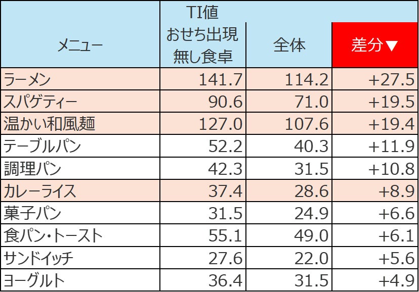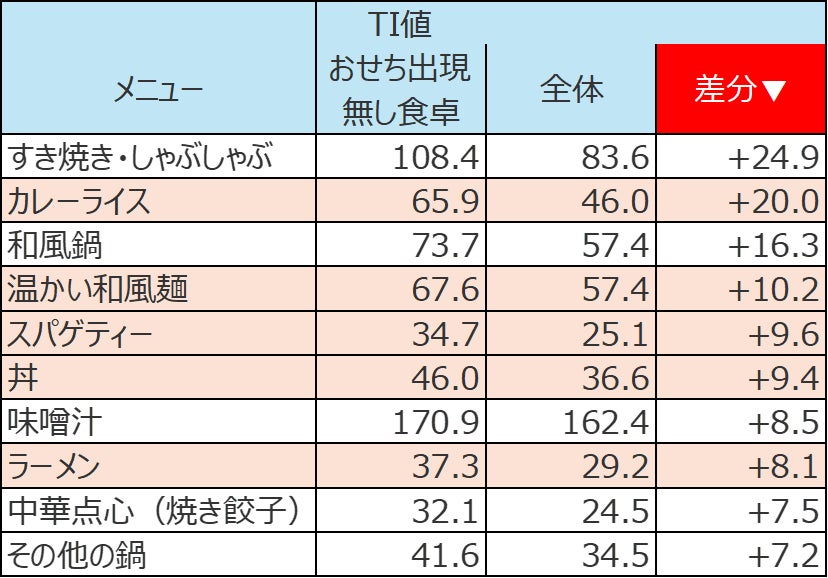 一方で、昼食にも好調だった主食一品完結メニューがここでも上位に並んでおり、おせち無し食卓での存在感の強さを示しています。