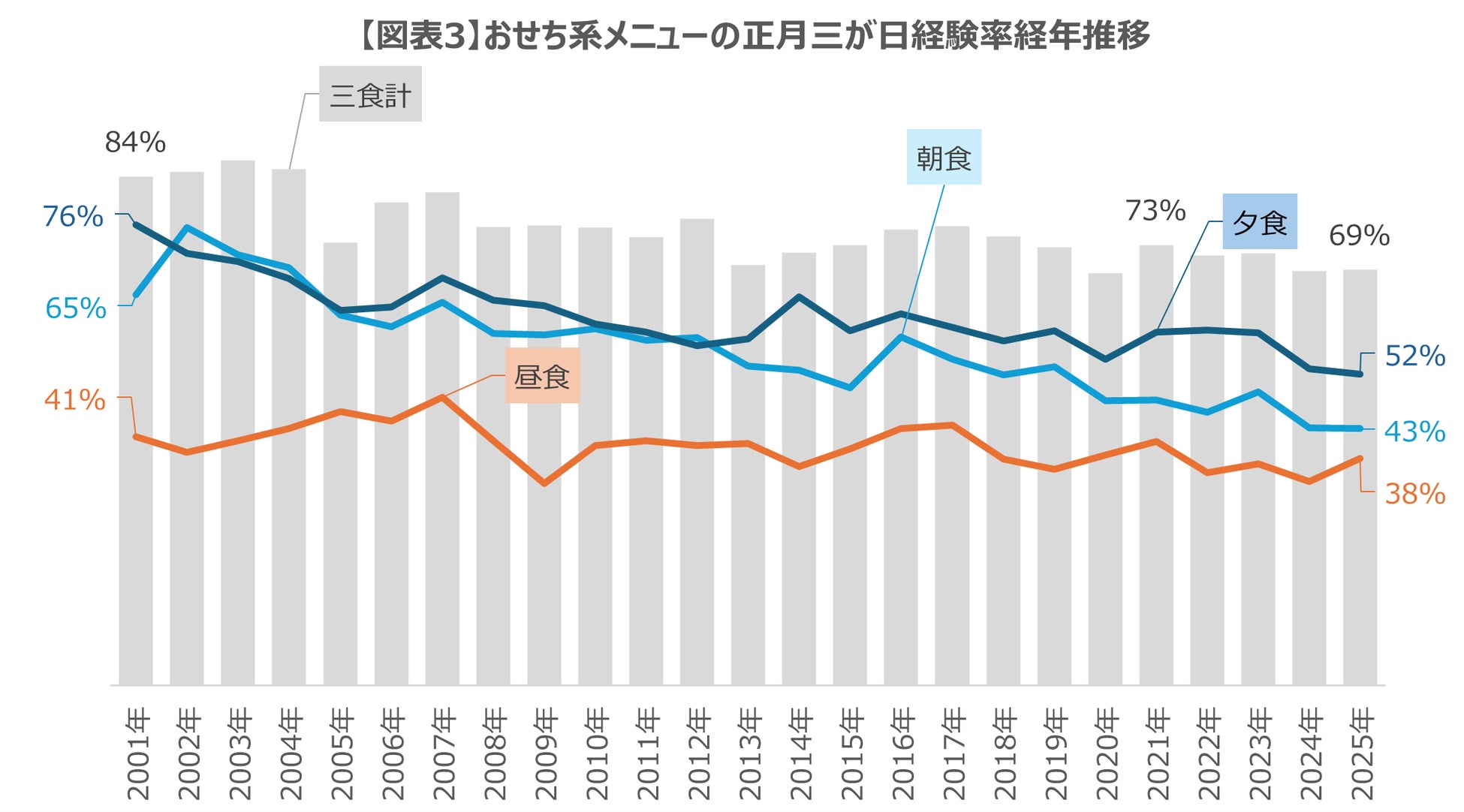 【図表3】ではおせち系メニュー全体の経験世帯率の推移を表しています。