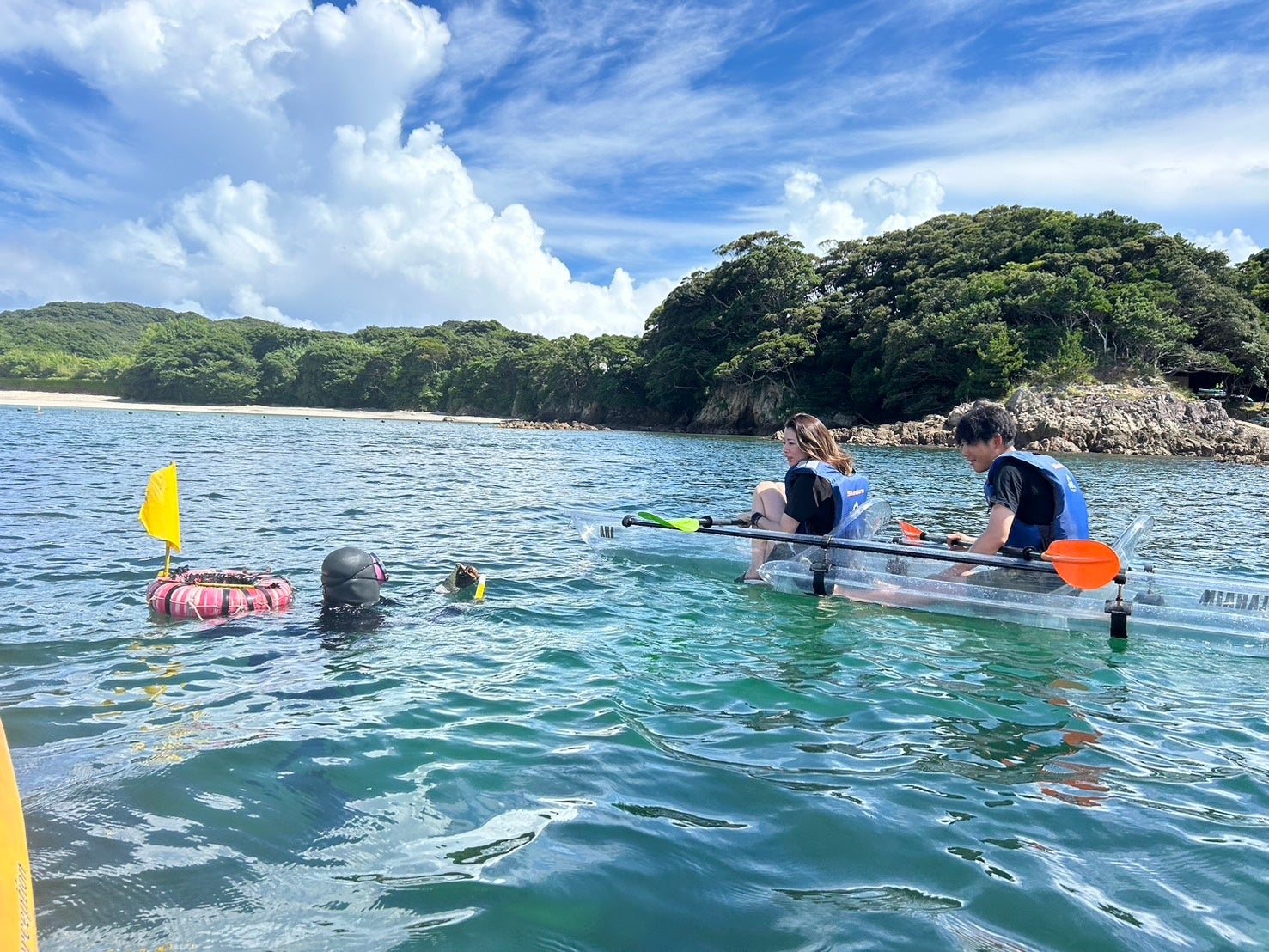 8月から9月に御予約可能なカヤックツアー(クリアカヤック、シュノーケリングカヤック)のガイドコースに、海女さんの漁場エリアがあり、漁のタイミングと合えば海上で仕事をしている海女さんに出会うことが出来ます‼