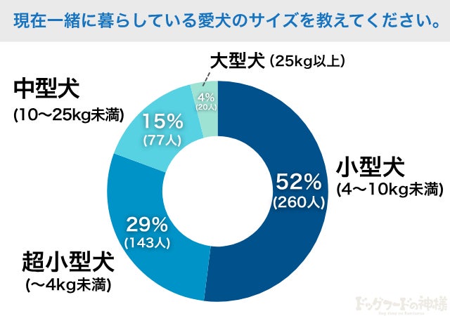 結果、最も多かったのは「小型犬(4〜10kg未満)」。次いで「超小型犬(〜4kg未満)」が続き、あわせて約8割を占める形になりました。