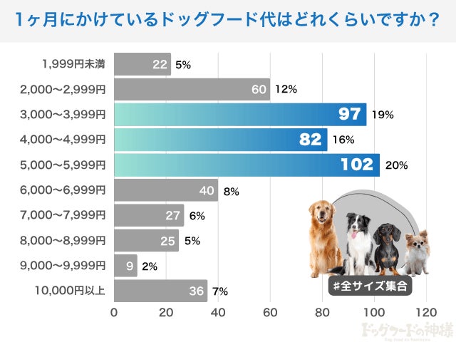 ドッグフード代の相場は「月3,000〜5,999円」が最多!5,000円台が一番のボリュームゾーンに。