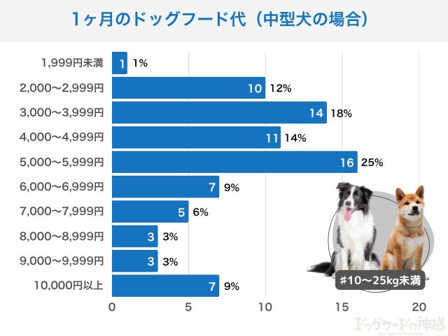 中型犬も「3,000~5,999円」が主な価格帯で、「5,000~5,999円」が最多(25%)という結果に。