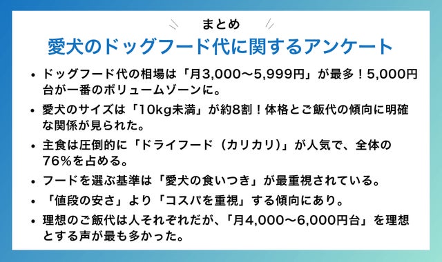 ドッグフードの質を考慮しつつ、無理なく続けられる価格帯として、これくらいが現実的だと感じている飼い主さんが多いようです。