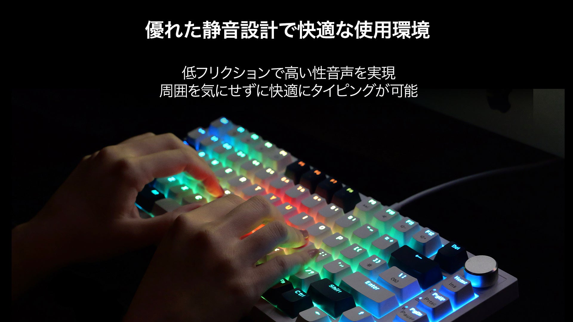 RGBバックライトと静音設計で、集中力を高める快適なプレイ環境を提供します。