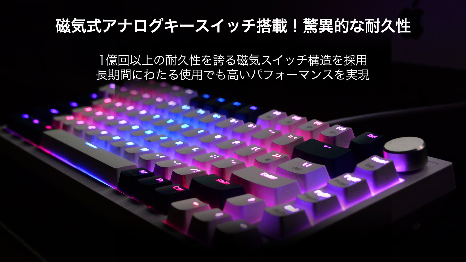 一億回以上の打鍵にも耐える磁気式アナログスイッチを採用。