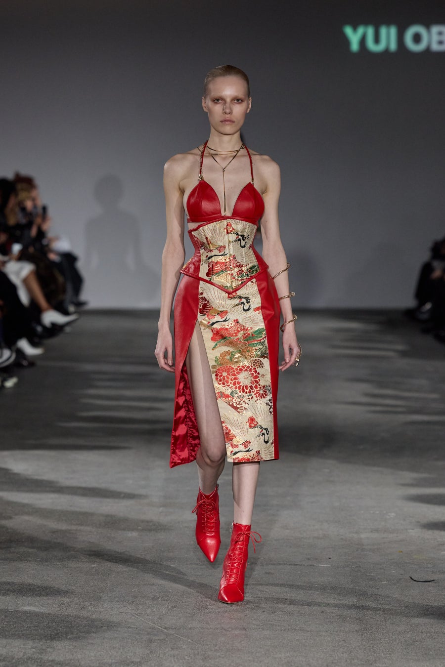 かつて女性を縛る道具だったコルセットを、現代の女性は自らの美意識で選ぶ。伝統技法でつくられた日本の帯と、西洋のコルセットを融合させた。アンダーバストとウエストの差寸を大きく取ることで、締め付けずにくびれるシルエットを実現。帯をコルセットにすることで気軽に文化を感じ、継承する。ジャポニズムの再来。ドレスアップのためではなく、日常のコーディネートに芸術品を取り入れるアイテム。纏えばその日の装いの主役になり、背筋が伸び、自信が生まれる。自分の美学で生きる女性のための鎧。