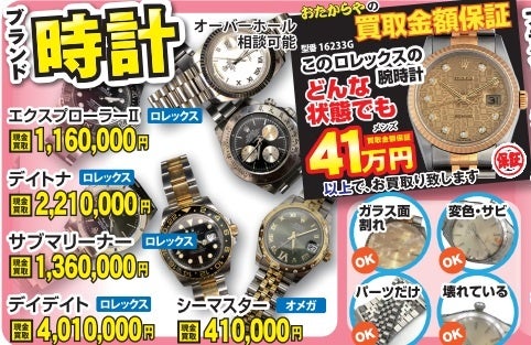 本キャンペーンでは、壊れている個体・ベルトが切れているもの・風防が割れているものなど、状態を問わず査定対象とし、適正かつ高額での買取を行います。
