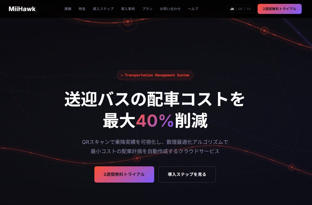 MiiHawkは、これらの課題を根本から解決するために開発された送迎バス配車最適化クラウドサービスです。