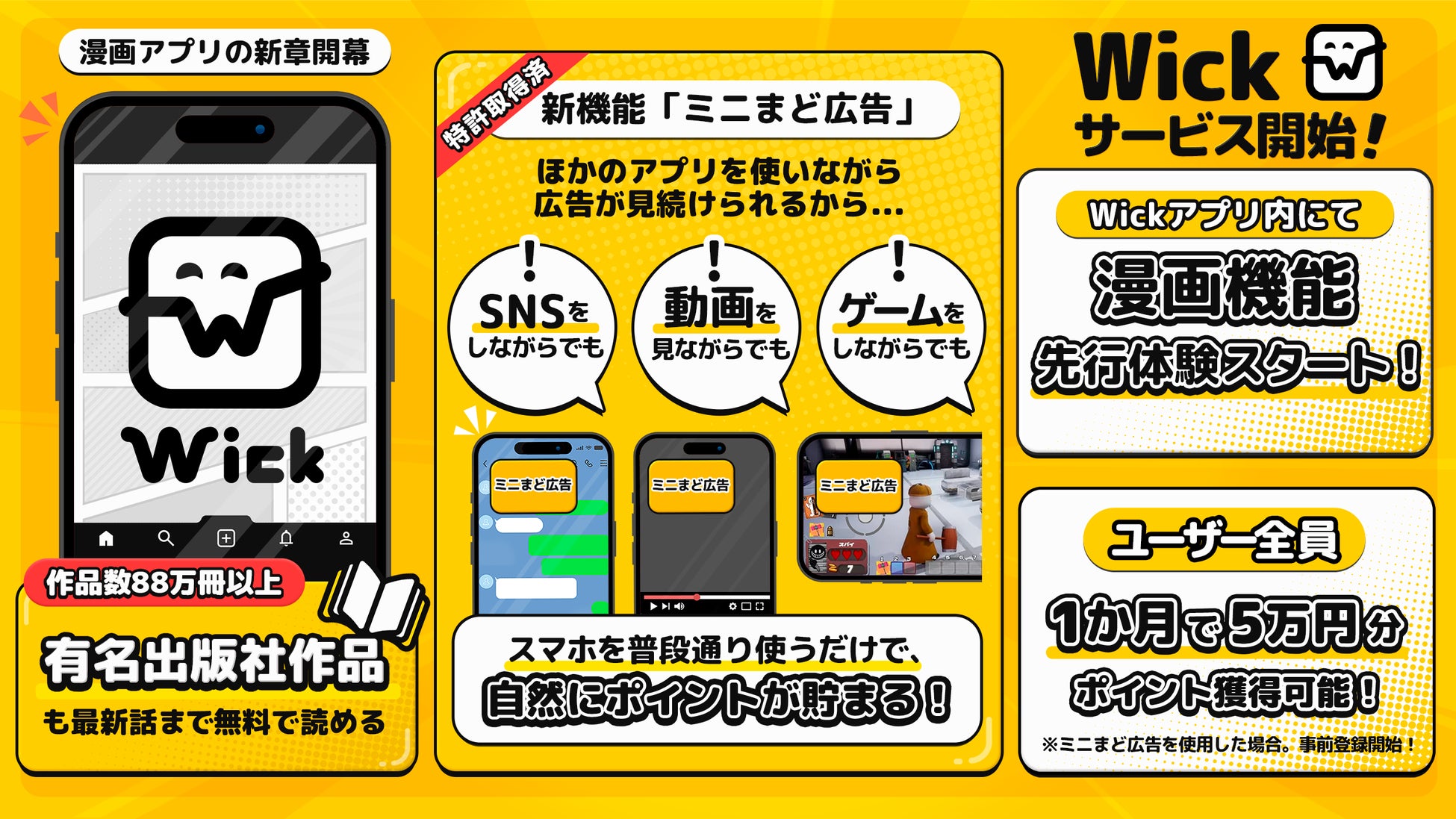 特許取得の「ミニまど広告」により漫画が最新話まで無料で読めるアプリ“Wick”がサービス開始