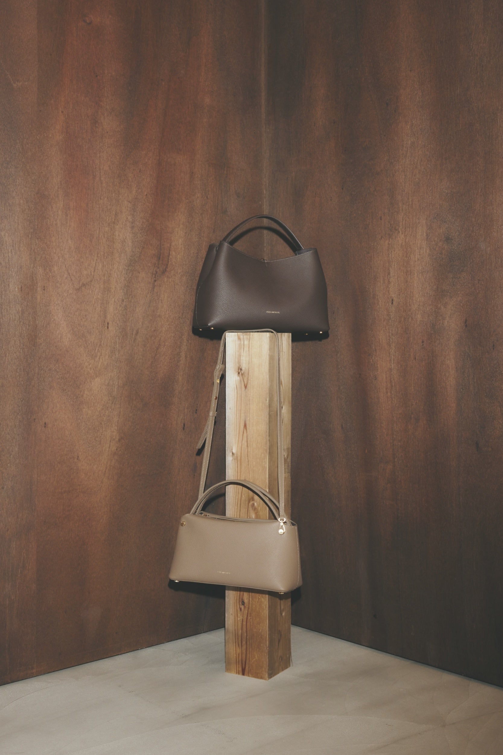 2025年秋冬シーズンにはブランド設立10周年を迎え、新シリーズ「bar-knot(バー・ノット)」が登場いたしました。「bar-knot」は、ループ状のハンドルを棒状の金属パーツに結び付けた独自のデザインが特徴のシリーズで、同シリーズではブランド定番のシュリンクレザーとマイクロファイバーを貼り合わせたボンディングレザーを使用し、シンプルでありながら存在感のある仕上がりとなっています。