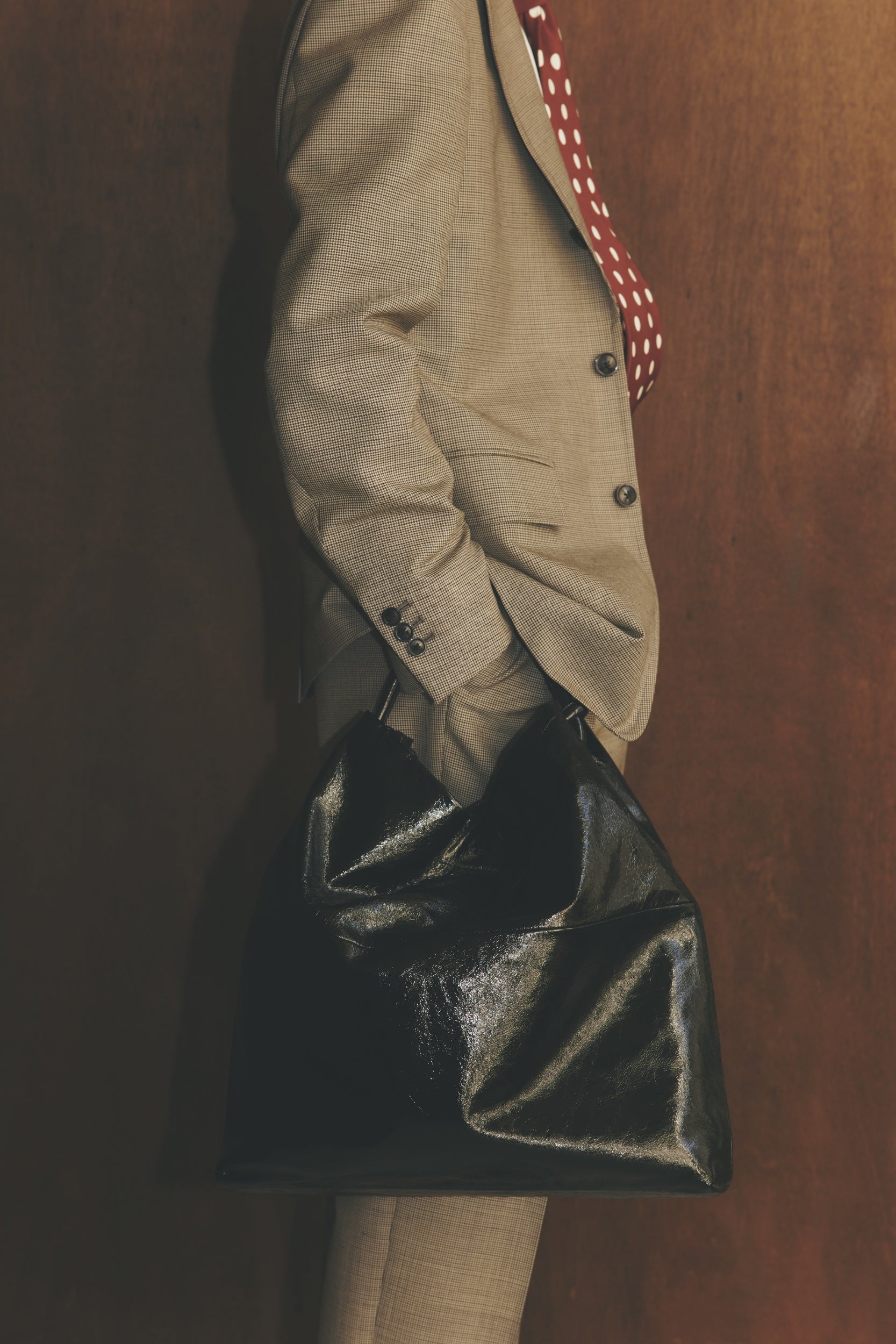 どちらのバッグも、オリジナルの棒状金属パーツと、シュリンクレザーにマイクロファイバーを貼り合わせたボンディングレザーを採用した、2025AWの新コレクションです。