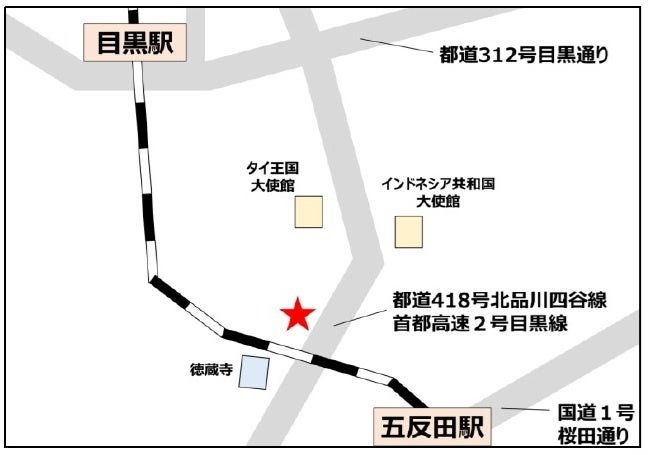 品川区上大崎付近 (品川区上大崎3-14-30:東京都道418号(北品川四谷線)) |
