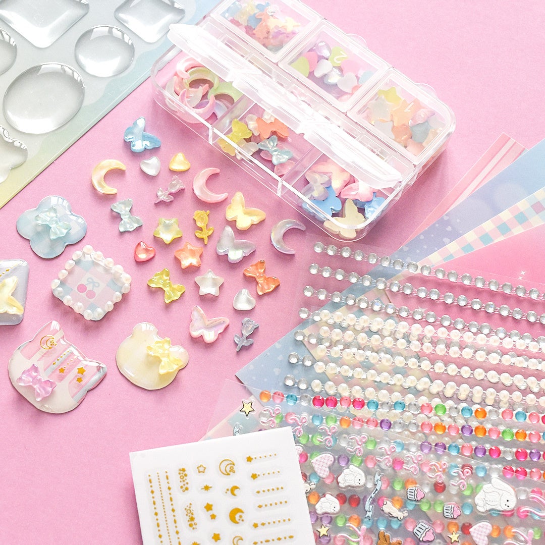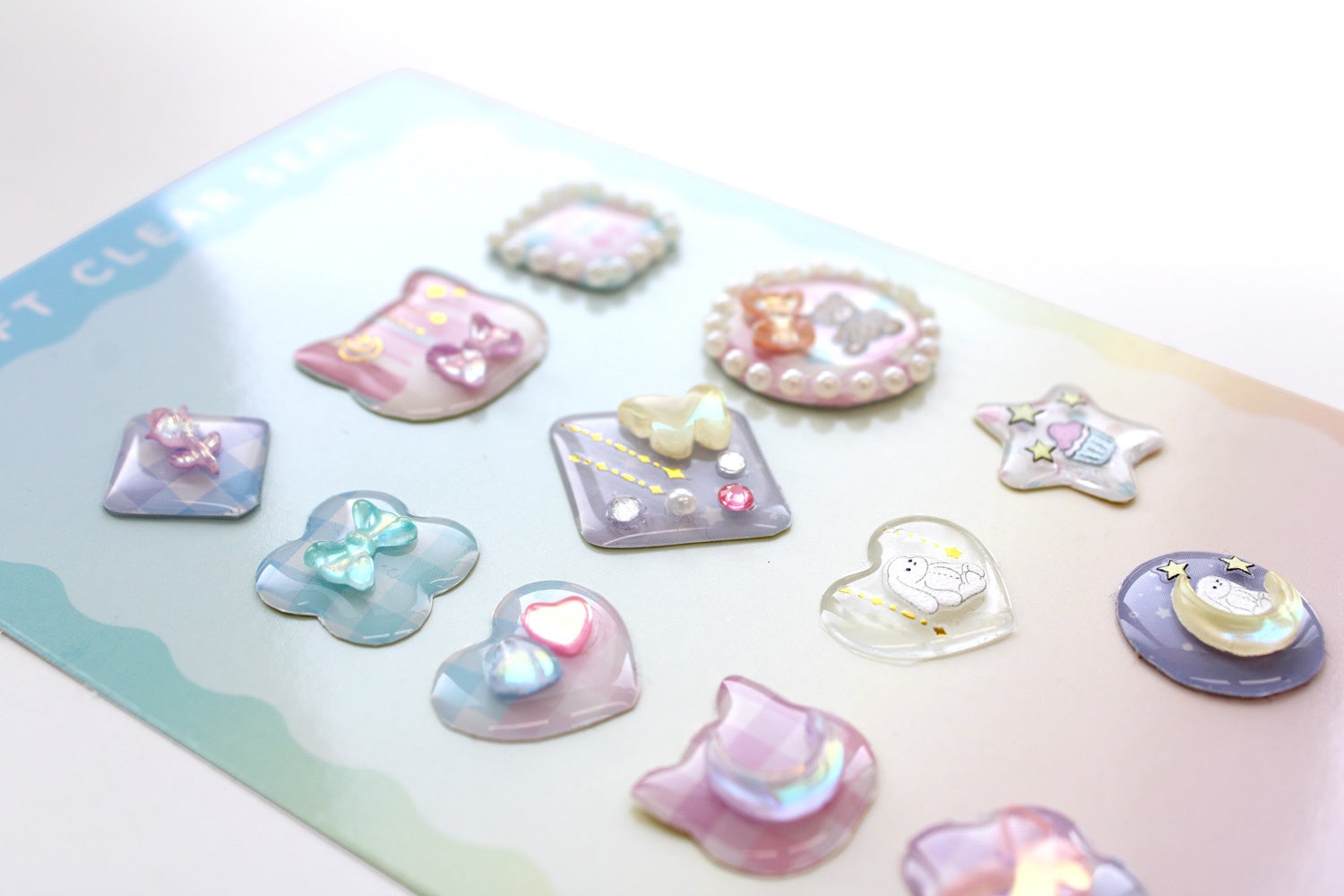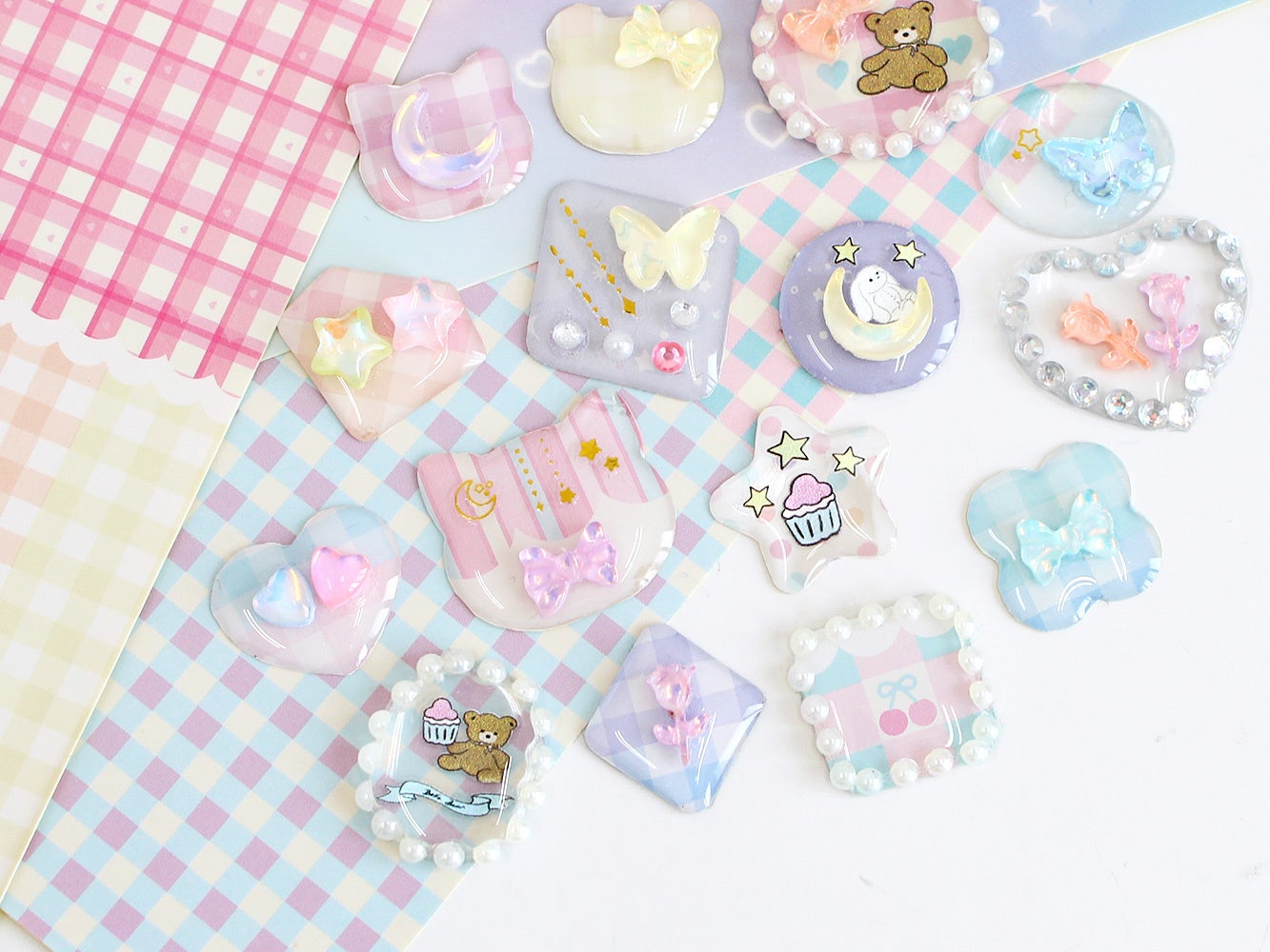 デコレーション素材を上から重ねるだけで、誰でも簡単にぷっくりシールを作ることができます。