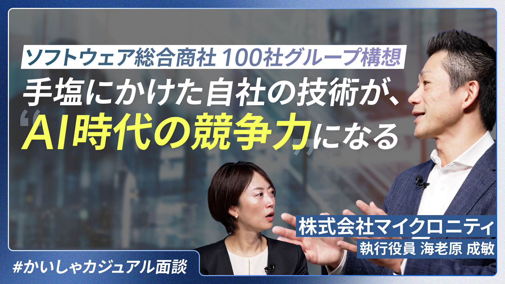 本サービスでは、M&Aサクシード代表取締役社長の金 蓮実氏と当社執行役員 アライアンス戦略部 部長 海老原 成敏が、マイクロニティの経営理念・成長戦略・グループ運営方針を語ります。