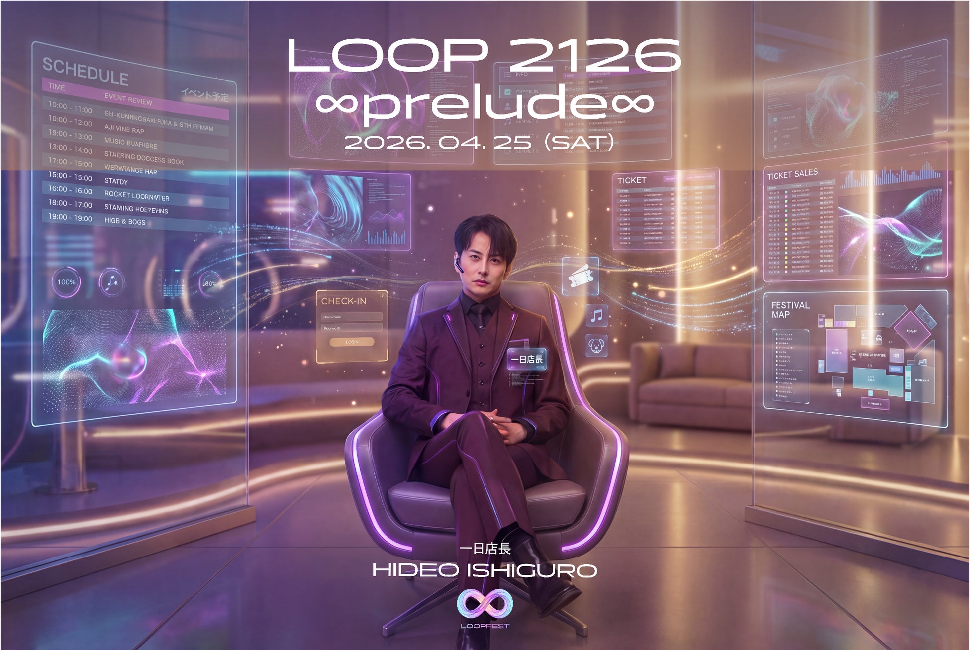 2026年4月25日(土)に新宿・歌舞伎町で初開催する体験型サイエンスフィクション・フェス「LOOP 2126 ∞prelude∞(https://www.loop8fest.com)」は、俳優・石黒英雄さんを1日店長に迎え、来場者と直接交流できるスペシャルイベントを開催いたします。本プログラムは入場無料でどなたでもご参加いただけます。