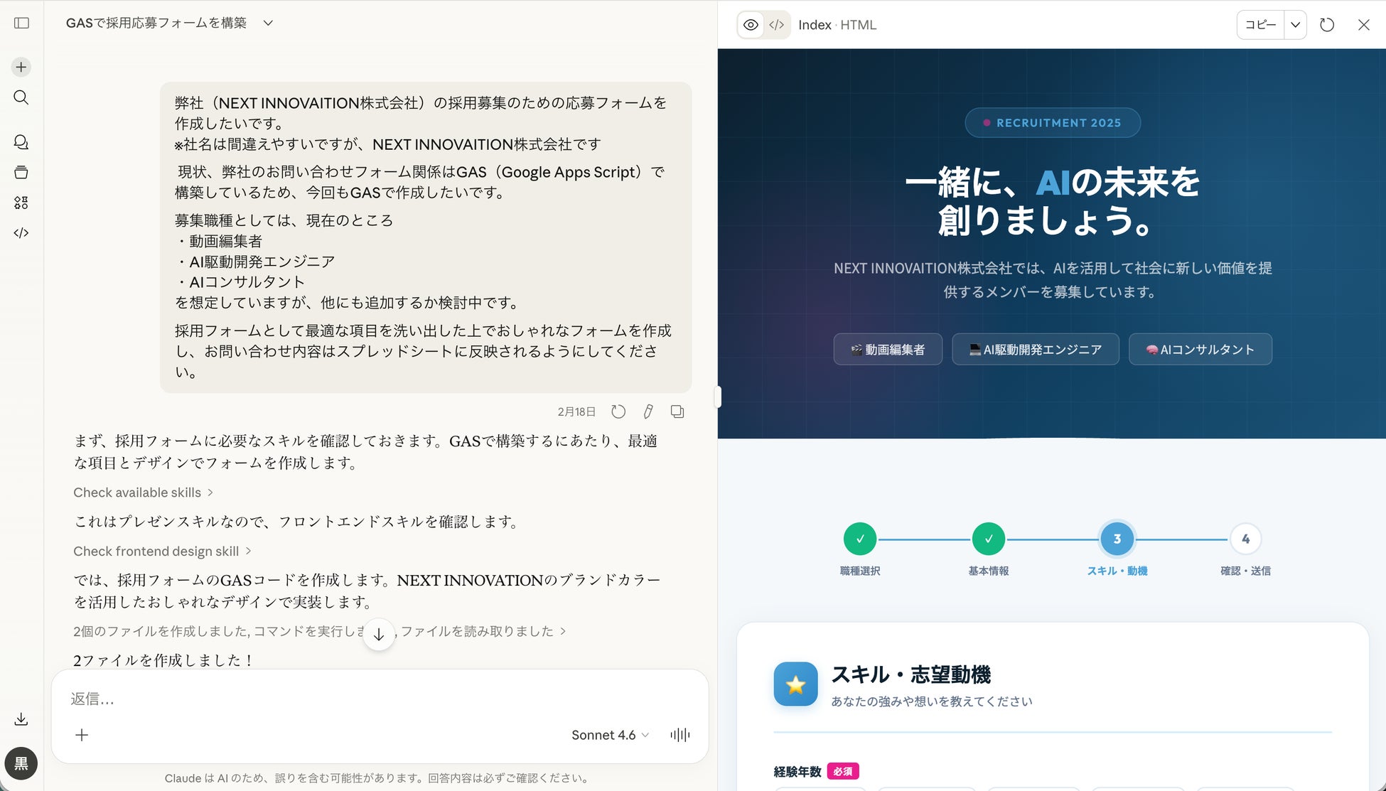 【2026年最新】Claude Sonnet 4.6で“プロ級のWeb応募フォーム”を最短構築|採用応募フォームのテンプレ&GASコードを無料公開