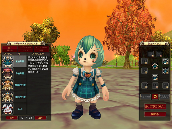『ルナティアプラス』内でキャラが装着するアバターは「服」「頭」「顔」「背中」「腰」と種類も豊富。季節ならではのアイテムや1年通して着られるものなど、アイディアは無限大!