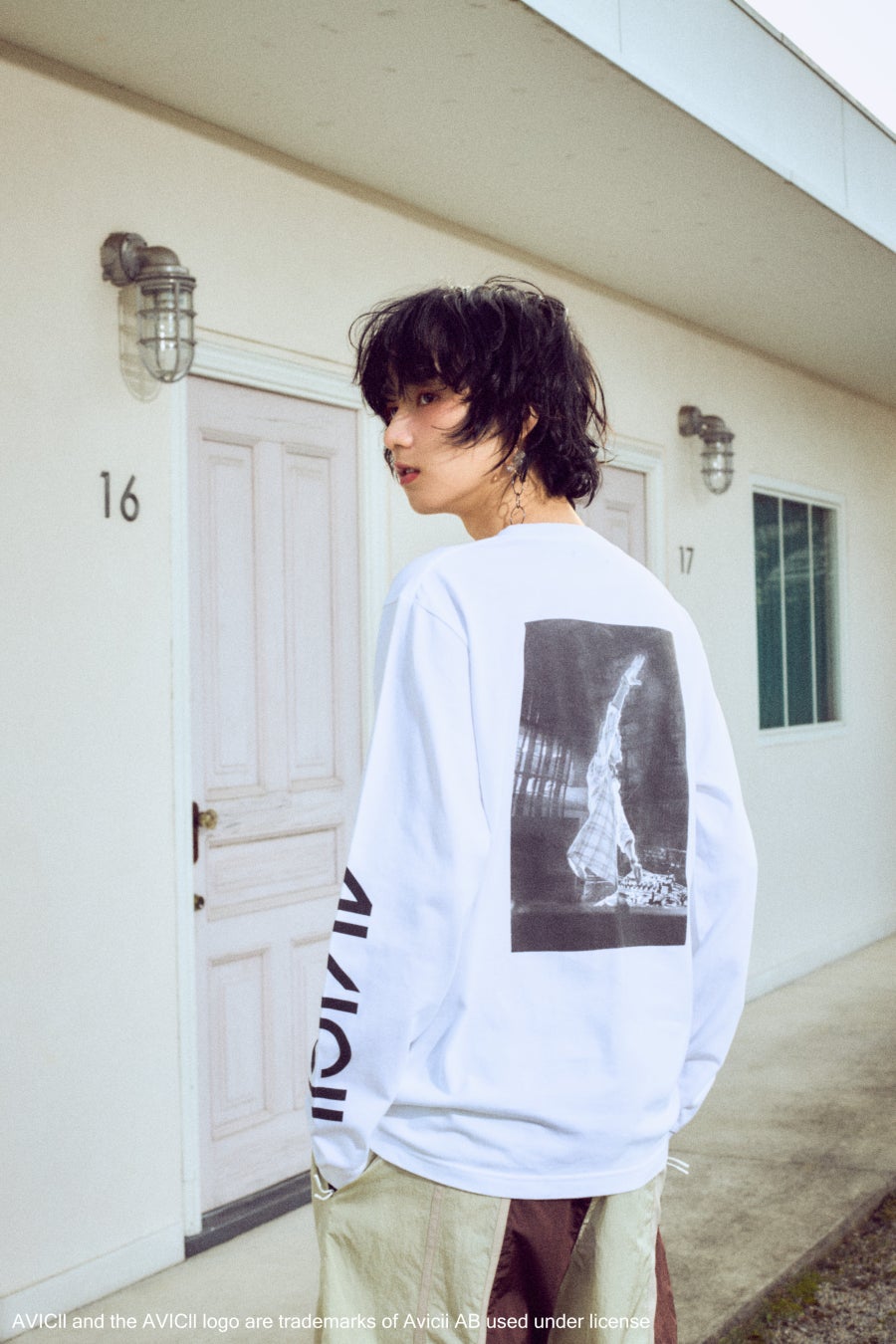 本コレクションは、Aviciiの象徴的なDJプレイ中のフォトや、ロゴをモチーフにデザインした全7型(ロングスリーブ1型、Tシャツ6型)を展開。彼が築いた音楽とカルチャーの象徴を、GOOD ROCK SPEEDの得意とするヴィンテージライクな風合いと、繊細なプリント技術によって現代のストリートスタイルへと昇華しました。