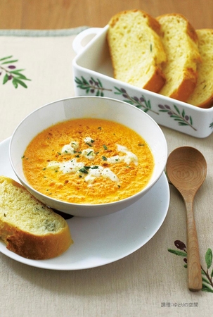 上記発売日より、クリームスープやミネストローネ、オリーブパンなどのレシピ付きミニブックを、全国の「ゆとりの空間」「share with Kurihara harumi」で配布します。お近くのショップへぜひお立ち寄りください。
