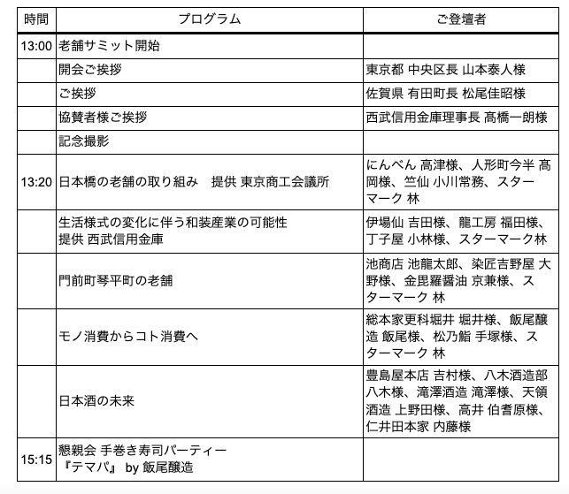 日本各地の旦那、女将が東京日本橋に一堂に集結!老舗の日に「老舗サミット」「老舗マルシェ」を開催両日合わせて56軒の老舗3,500名の来場者★STARMARK®20周年事業