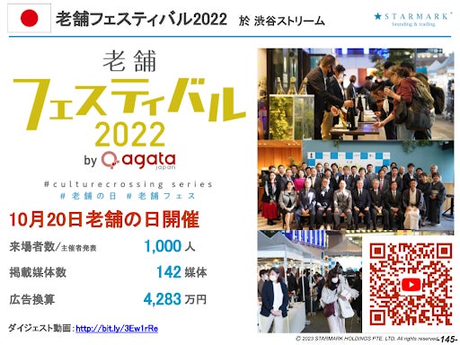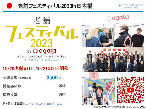 日本全国の老舗の逸品を扱うECサイト「老舗通販.net by agataJapan」および江戸東京の老舗やお出かけ情報を紹介する「agataJapan.tokyo」を運営するスターマーク株式会社は、10月20日『老舗の日』と翌21日に、日本が世界に誇るべき老舗の技術、伝統や文化を幅広い層に触れていただくイベント『老舗フェスティバル2023 by agataJapan』を実施いたしました。