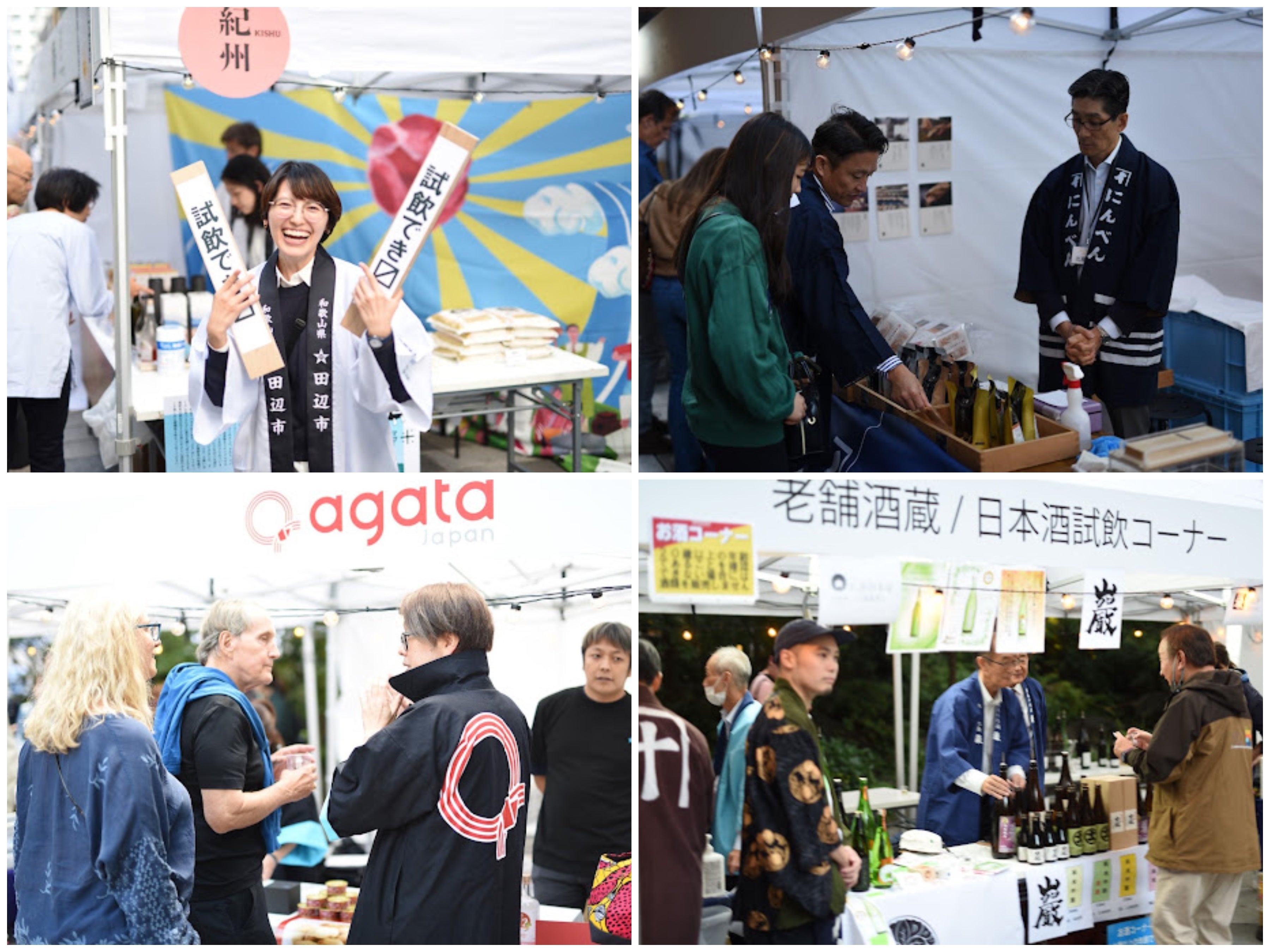 イベント2日目は、全国の老舗の逸品や地方の物産品を取り揃えた「老舗マルシェ」を開催。東京の古いのれんの集い「東都のれん会」や地方自治体の出店ブースでの体験やショッピング、仙醸・田村酒造場・豊島屋本店・仁井田本家・八木酒造部など日本各地の14の酒蔵による試飲コーナーではそれぞれ特徴ある日本酒の飲み比べを楽しんでいただきました。特設ステージでは国内外で活躍するDJによるライブも行われ、伝統と現代の交差点としてのイベントを盛り上げました。