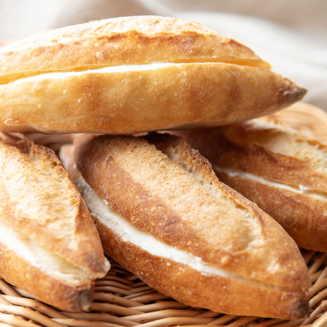 セ・トレボンの看板商品といえば、「プチミルクバゲット」です。オープンから20年以上にわたり、不動の人気を誇っております。噛むほどに奥深い味わいのセ・トレボンのミニバゲットに、練乳とバターでつくった自家製ミルククリームをたっぷりサンドしています。ミルキーで優しい味わいが幅広い世代から愛されており、セ・トレボンの知名度を上げた逸品です。