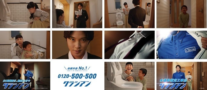 今回のCMでは、磯村さんのヒーロー的な立ち居振る舞いが際立つのですが、「クラシアンは24時間受付、最短30分で駆けつけます」の部分の動きは、実は前日の夜遅くまで練習に励み本番に挑まれたと言う珠玉のポーズとなります。さらに、トイレの修理を終え最後に立ち去る際におもむろに片手を挙げる演技はご本人のアドリブが採用され、磯村さんの潜在的な「ヒーロー感」がにじみ出るシーンとなりました。(30秒Ver.より)
