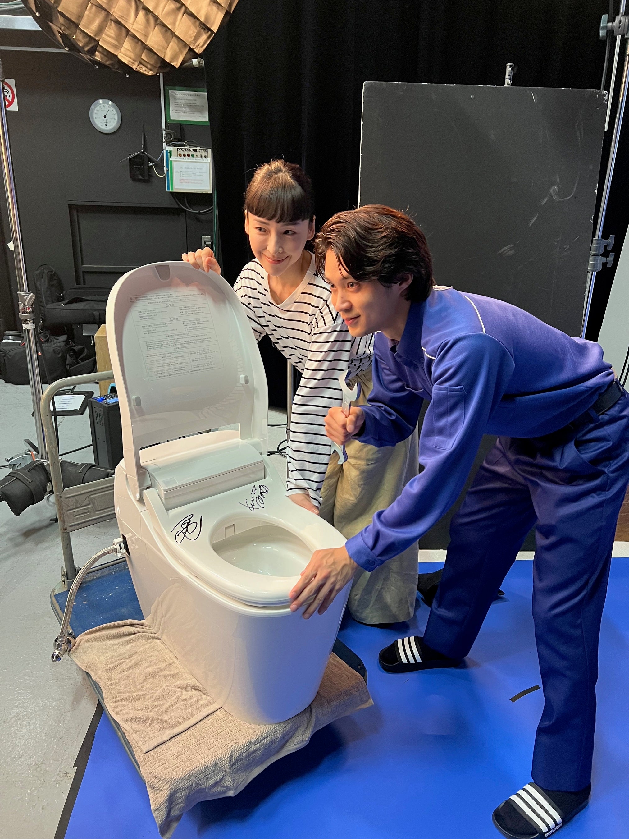 また撮影終了後には、CMで使用したトイレに麻生さんと磯村さんのサインをいただいたのですが、その際に磯村さんは「童心に戻っていたずらをしている気分(笑)」と呟く一幕も。