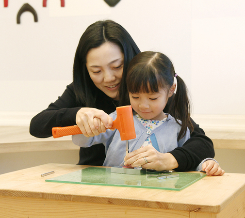 「まいにちワークショップ」は、職人たちの日々感じている「つくる喜び」を子ども達にも伝えたいと考えたことから2013 年より始まりました。子ども達はもちろん、家族皆でものづくりの楽しさを味わえるワークショップを2015 年6月まで毎月内容を変えて開催します。