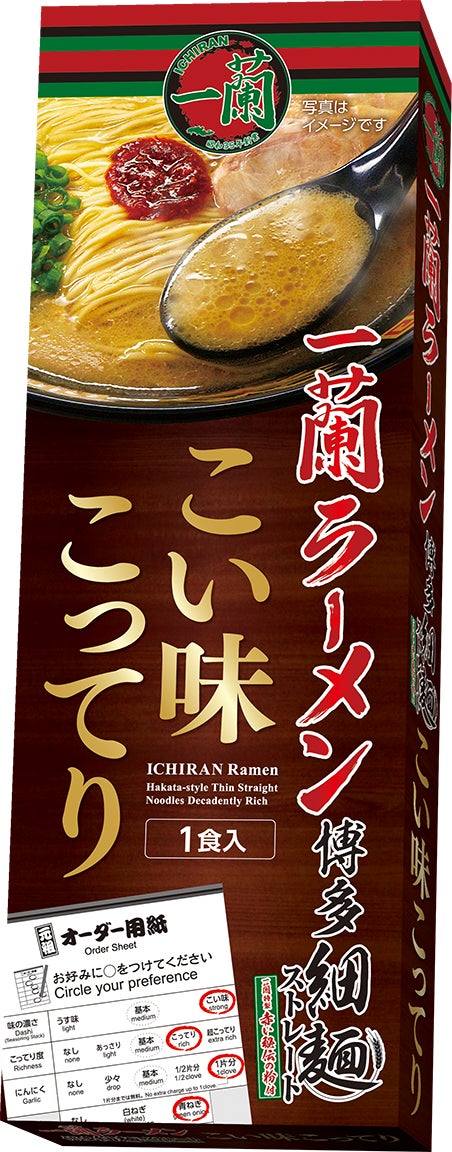 株式会社一蘭は、2025年4月1日(火)に「一蘭ラーメン 博多細麺ストレート こい味こってり」を発売いたします。本商品は、一蘭の店舗で人気のオーダー「こい味」「こってり」を表現し、濃厚でコク深いスープと、独自配合の博多細麺が織りなす贅沢な味わいが特長です。ご自宅でも、一蘭ならではの味わいをぜひお楽しみください。