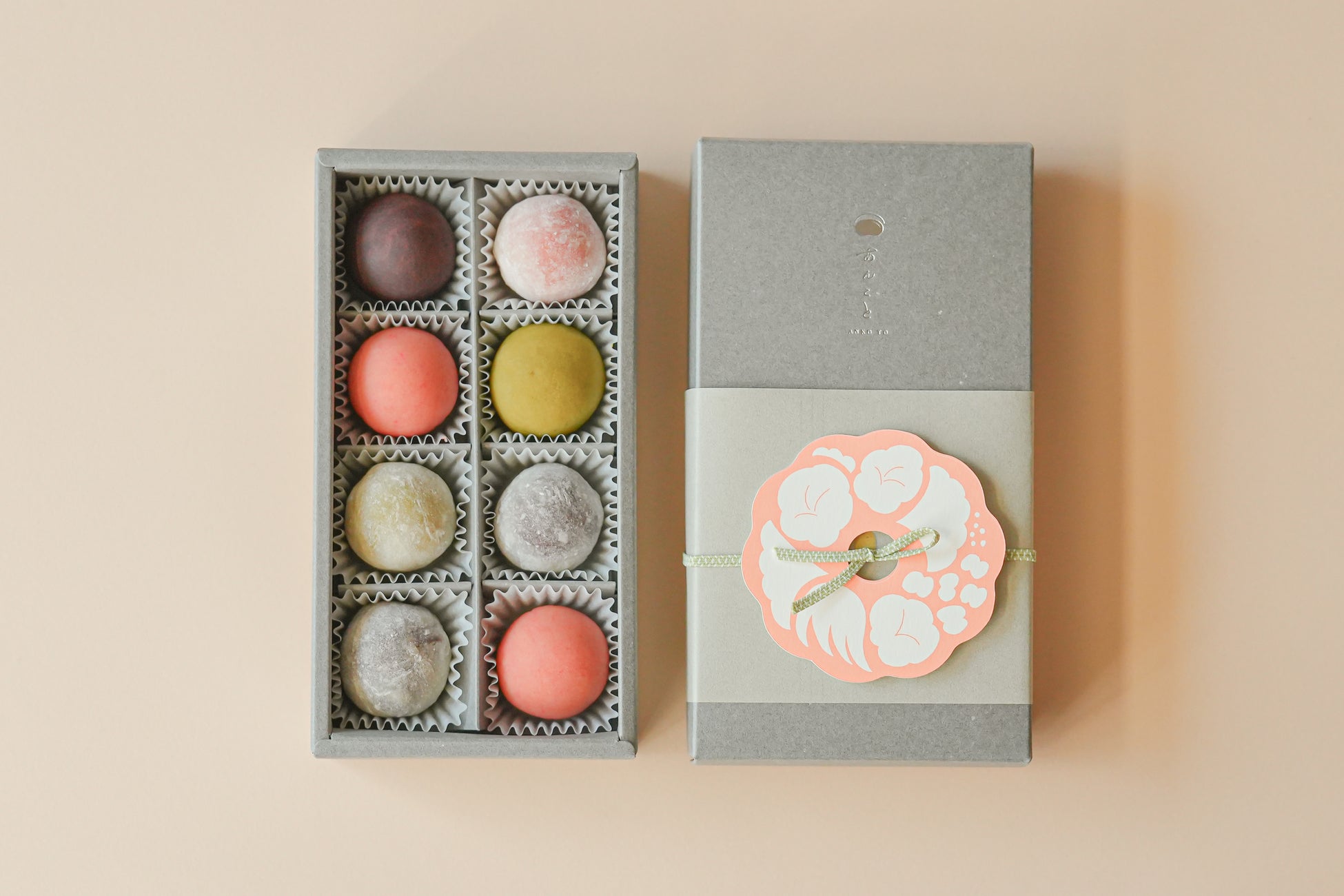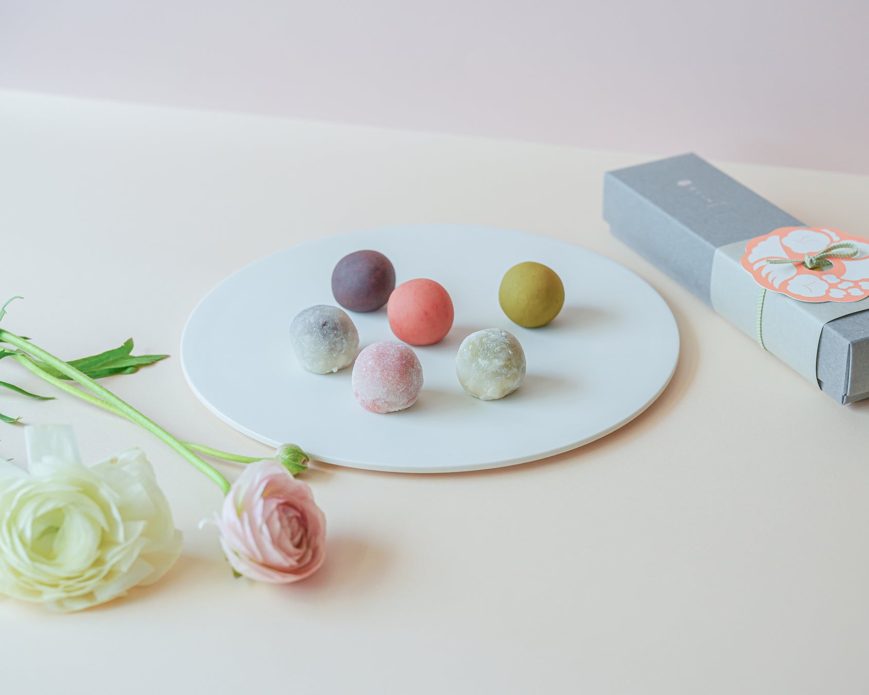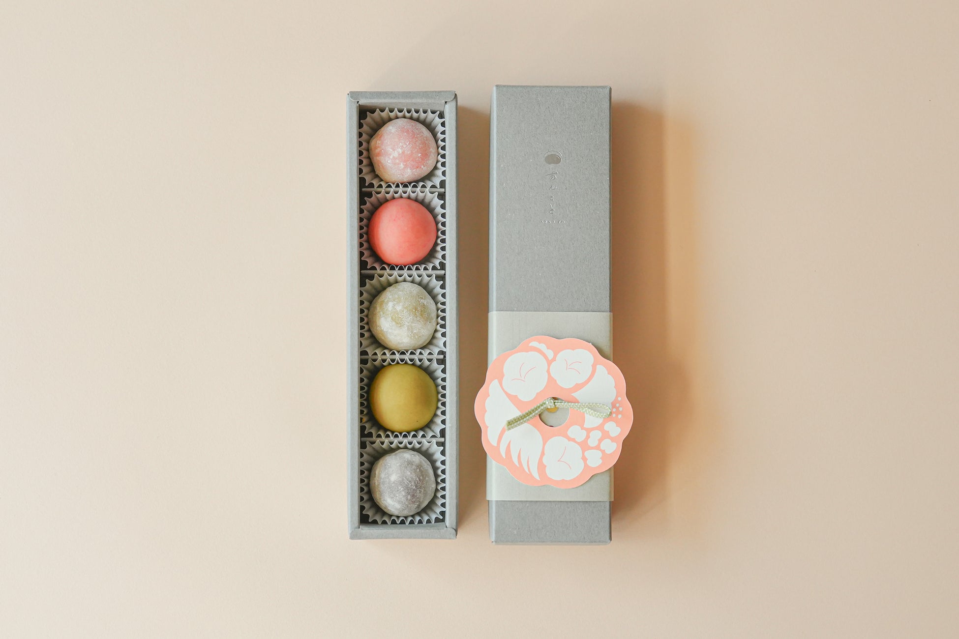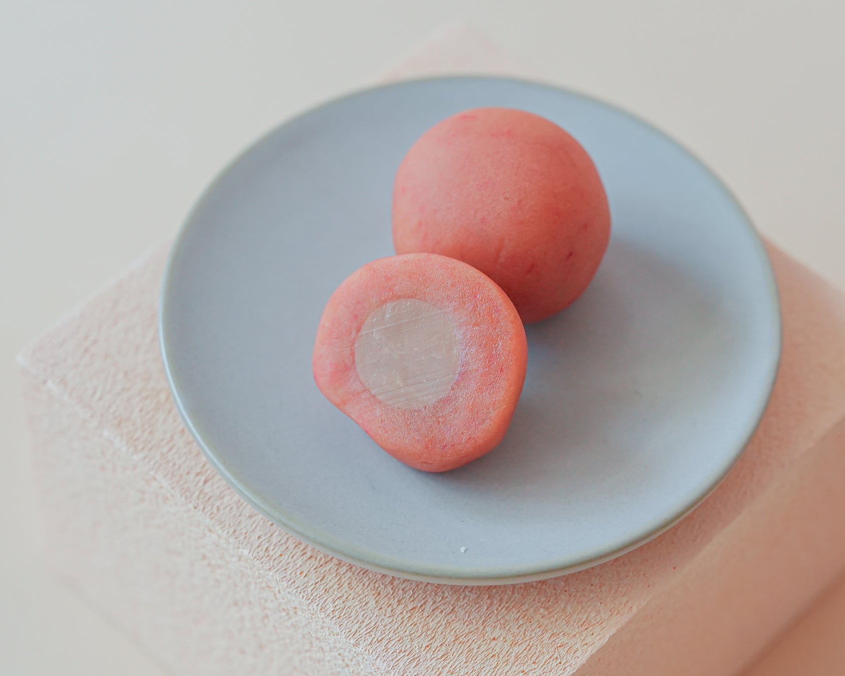 白玉粉を使ったやわらかな求肥で、あんこショコラ〈さくら〉を包みました。ふわりとさくらが香る、和×洋を組み合わせたさくらもち。