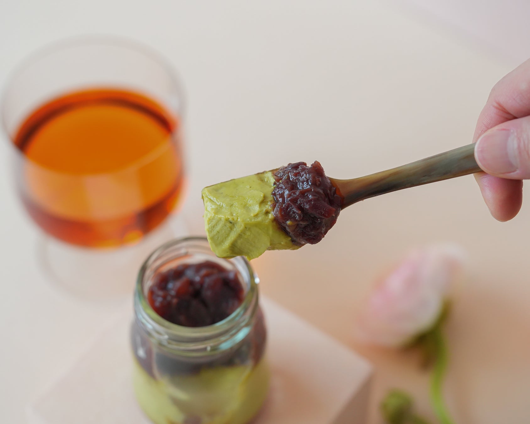 卵、生クリーム、てんさい糖で作ったシンプルなプリン生地に、美味しさも栄養もまるごと閉じ込めた静岡県産“新茶”の粉末緑茶や、桜の豊かな香りが広がる桜パウダーを合わせ、オーブンでじっくり蒸し焼きしたねっとり濃厚な「あんこプリン」です。あんこプリン専用の特製あんこをたっぷりと絞って仕上げています。あんこの「甘さ」とプリンの「コク」、そしてカラメルの「ほろ苦さ」を合わせて、思わずうっとりするバランスのとれた絶妙な味わいをお楽しみください。