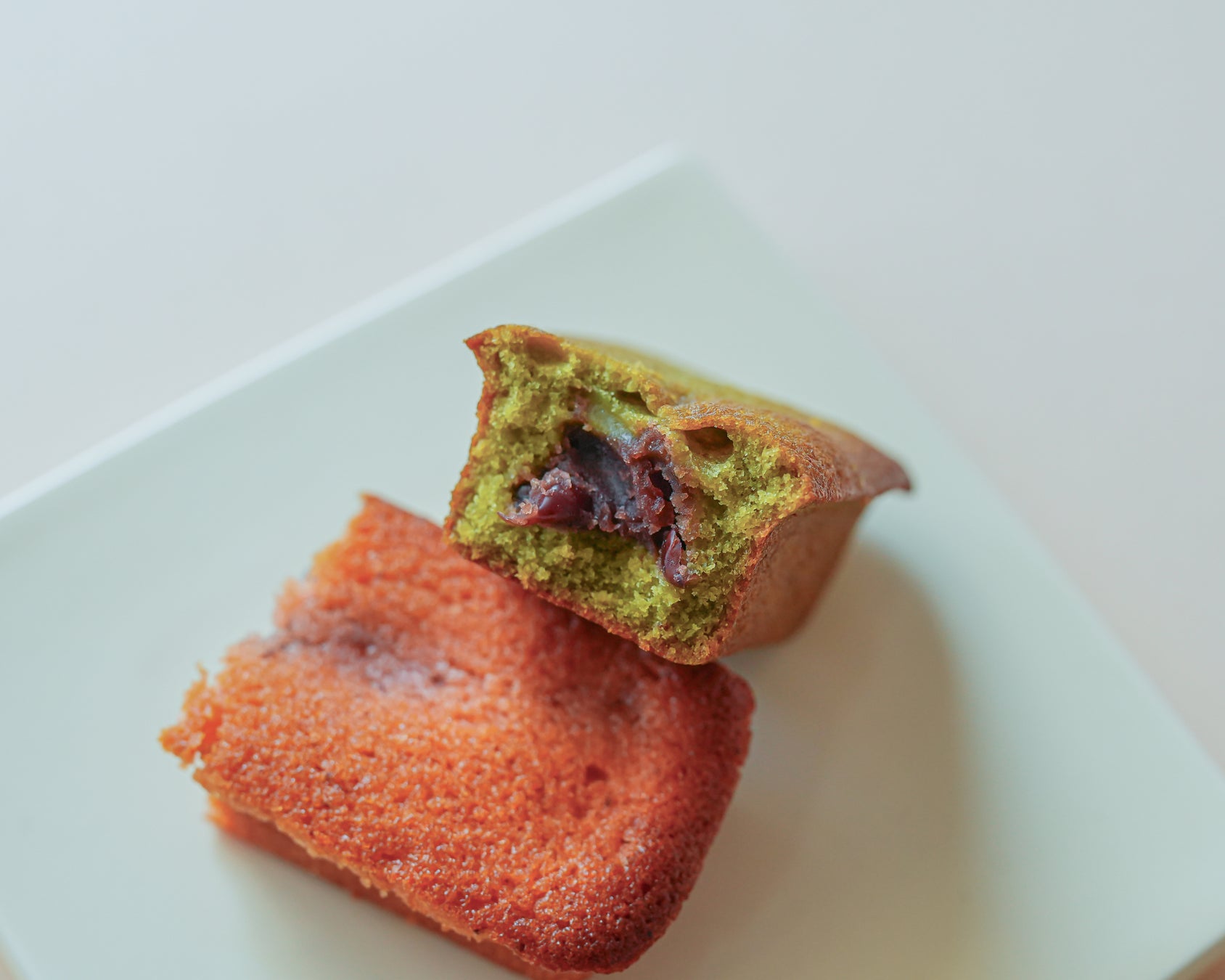 ほろ苦い緑茶のフィナンシェ生地に自家製あんこが絶妙なバランスの奥深い味わい。