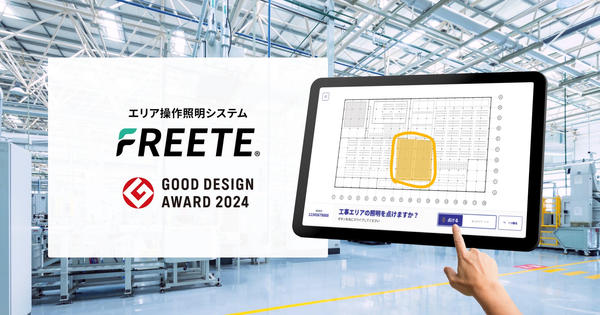 エリア操作照明システム FREETE®(フリート)は2024年度のグッドデザイン賞を受賞しました。「旧来の設備に最新のデジタル技術を融合し、環境負荷を抑えつつ柔軟な照明管理を可能にしている、社会課題に取り組む優れたシステムである。」として評価されています。