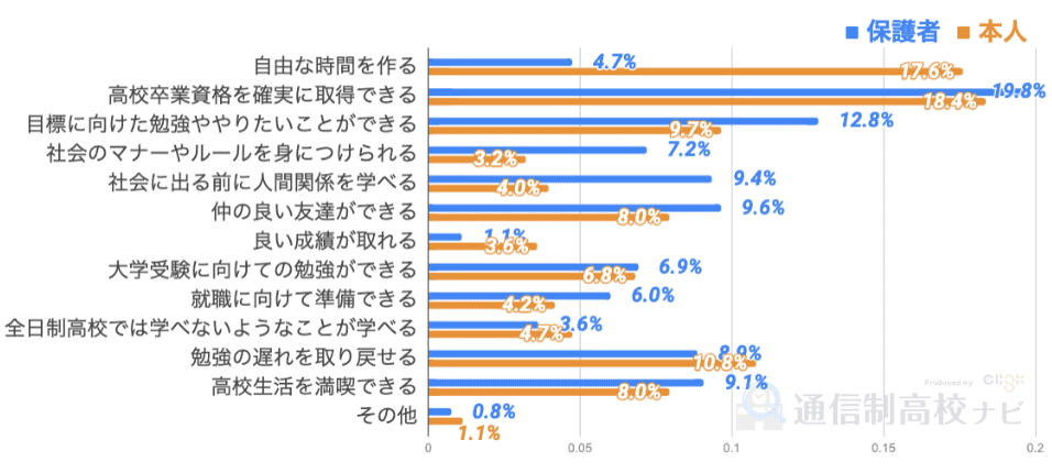 高卒資格の取得は大前提として、勉強面のサポート体制や、学校生活を楽しめる環境にも期待する声が見受けられました。