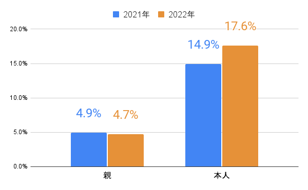 一方、保護者と本人による回答で大きな開きがあったのは、前回と変わらず、「自由な時間を作る」保護者4.7%(前回4.9%)、本人17.6%(同14.9%)でした。本人では、前回調査に比べ3.3ポイント上昇しています。
