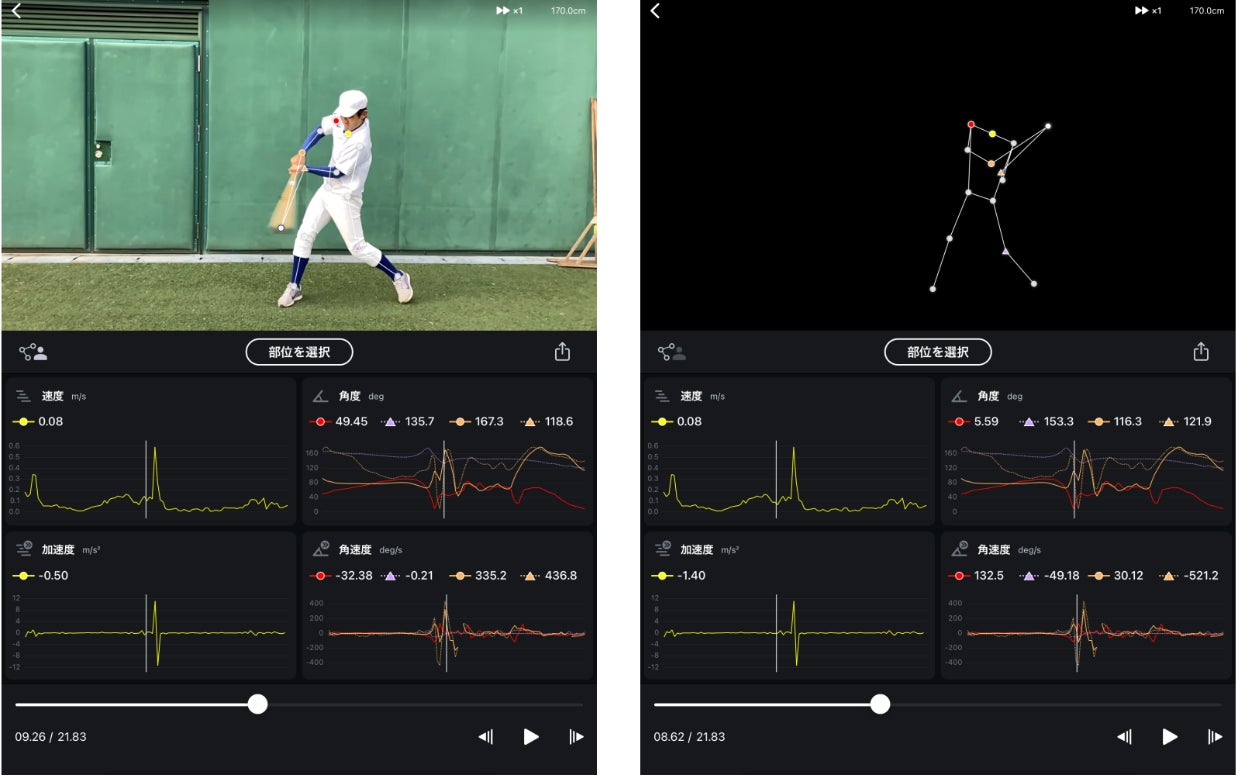 iPhoneもしくはiPadで撮影すれば、AIによって動作分析を行えるので誰でも手軽にスポーツサイエンスに携わることができます。