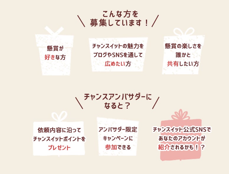 懸賞サイト【チャンスイット】にて、懸賞の魅力を伝える「チャンスアンバサダー」の募集を開始
