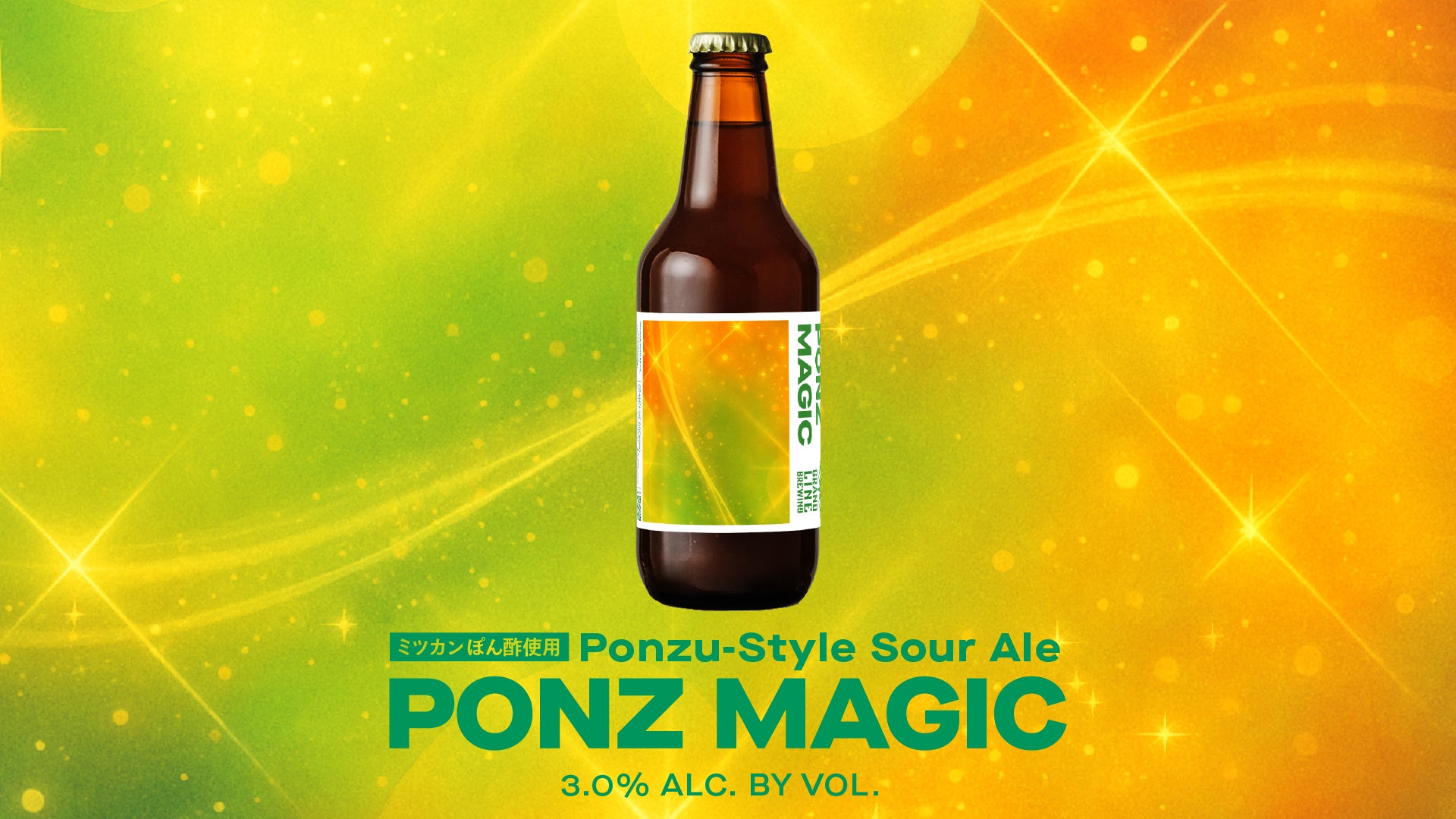 ミツカンぽん酢を使用し、どんな料理にも寄り添う一杯が誕生しました。きりっとした爽やかな酸味に、ほのかな甘みが重なりあうバランスの良い味わい。食中酒として設計したサワーエールで、低アルコールならではの軽やかさを持ちながらも、輪郭のあるフレーバーが料理の旨みを引き立て、気づけば次のひと口が欲しくなる後引く飲み心地に仕上げています。”MAGIC”を想起させる星のホログラム加工を施したこだわりのビールラベルにも注目です。