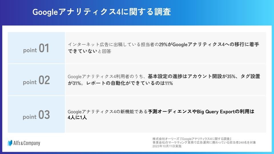 ・Googleアナリティクス4への移行に着手できていない企業が29%