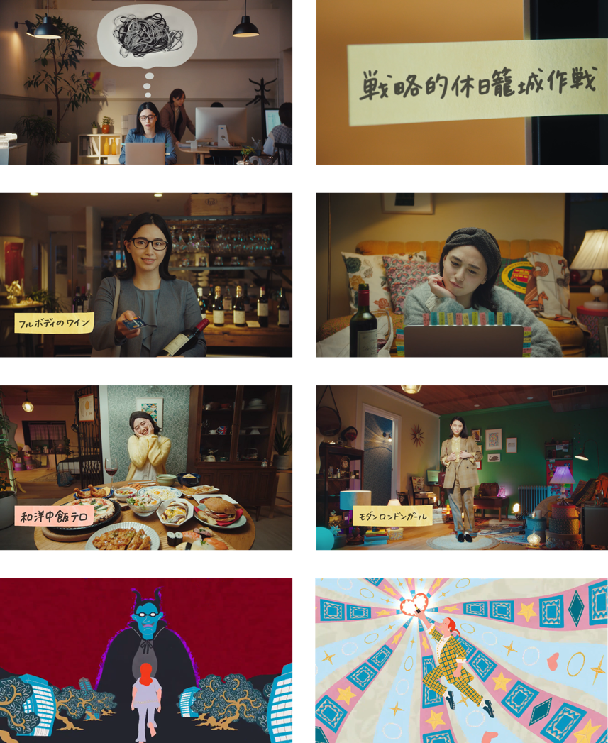仕事に追われ、いそがしい毎日で自分らしさを忘れかけてしまった主人公カナは3日間の有給休暇を取得する。好きなものを好きなだけ買って、自宅に籠城し、やりたかったことに思いっきりチャレンジする“戦略的休日籠城作戦” を決行!買い物を通して自分の心を満たし、前向きなジブンに変わっていく様子を明るくポップに描いたムービーです。